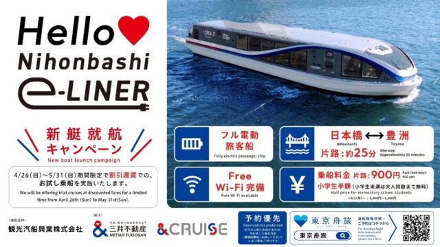毎日運航!フル電動船「Nihonbashi e-LINER」、4月26日より期間限定運賃900円で乗れる!