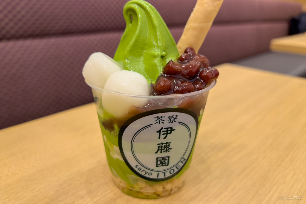 茶寮 伊藤園は、本格的な抹茶やこだわりの茶葉を使用した淹れたての緑茶のほか、抹茶ラテ、抹茶ソフト、甘味などを提供する和カフェ。