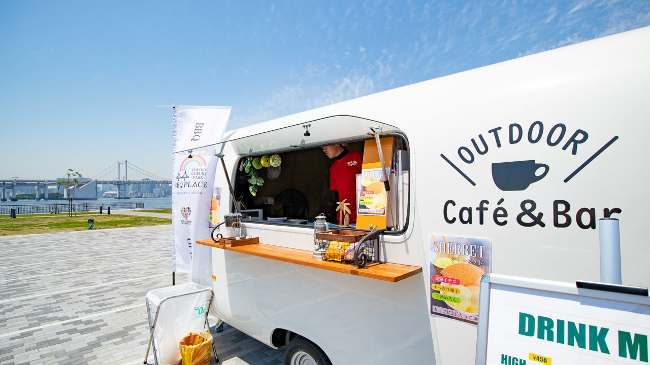 今回ご紹介したように、豊洲ぐるり公園に散歩しに来た人などBBQを利用しなくてもカウンターでドリンクやシャーベットが買えるようになっています。ありがたいですね〜!