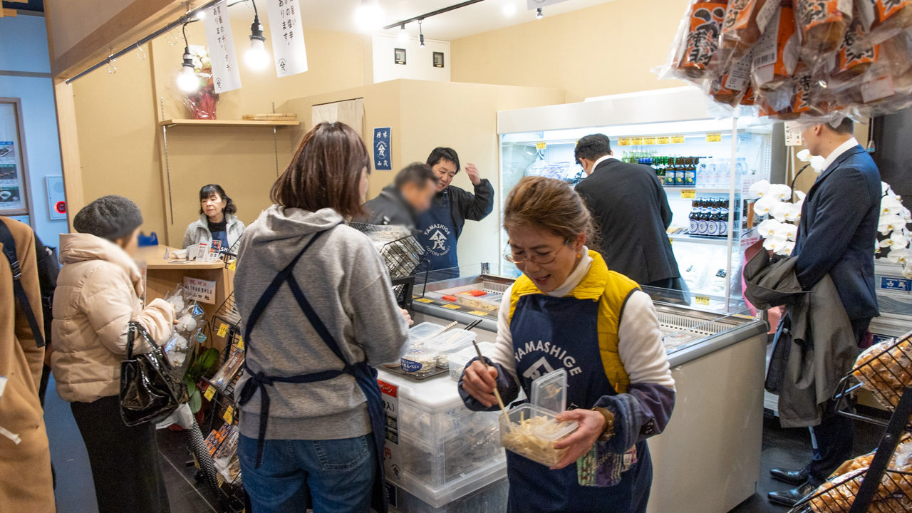豊洲市場の魚がし横丁にも店を構える山茂。その江戸前場町に姉妹店を出店。豊洲市場に入荷する塩干物などを一般客も買いやすい小分けパックで販売。