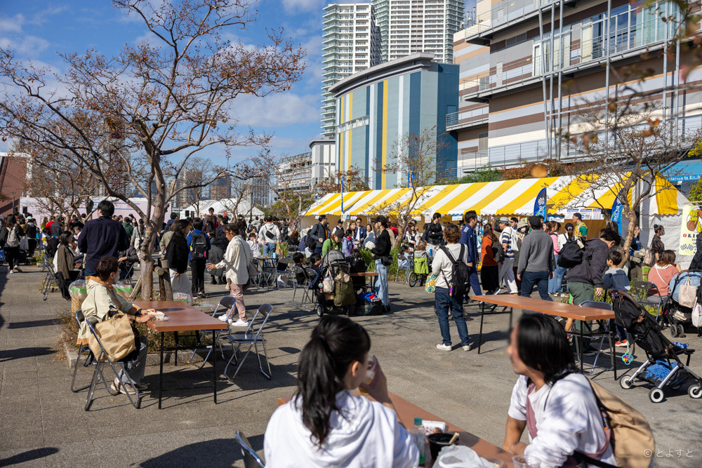 豊洲公園の花木とモニュメント広場にて開催される江東湾岸まつりは、たくさんの販売ブースが並び、特設ステージでは多くのパフォーマンスが楽しめます。