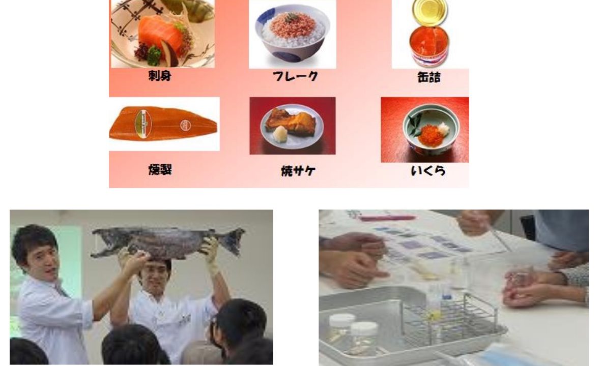 - サケの卵や稚魚・成魚を観察し、サケの一生を知る実験授業