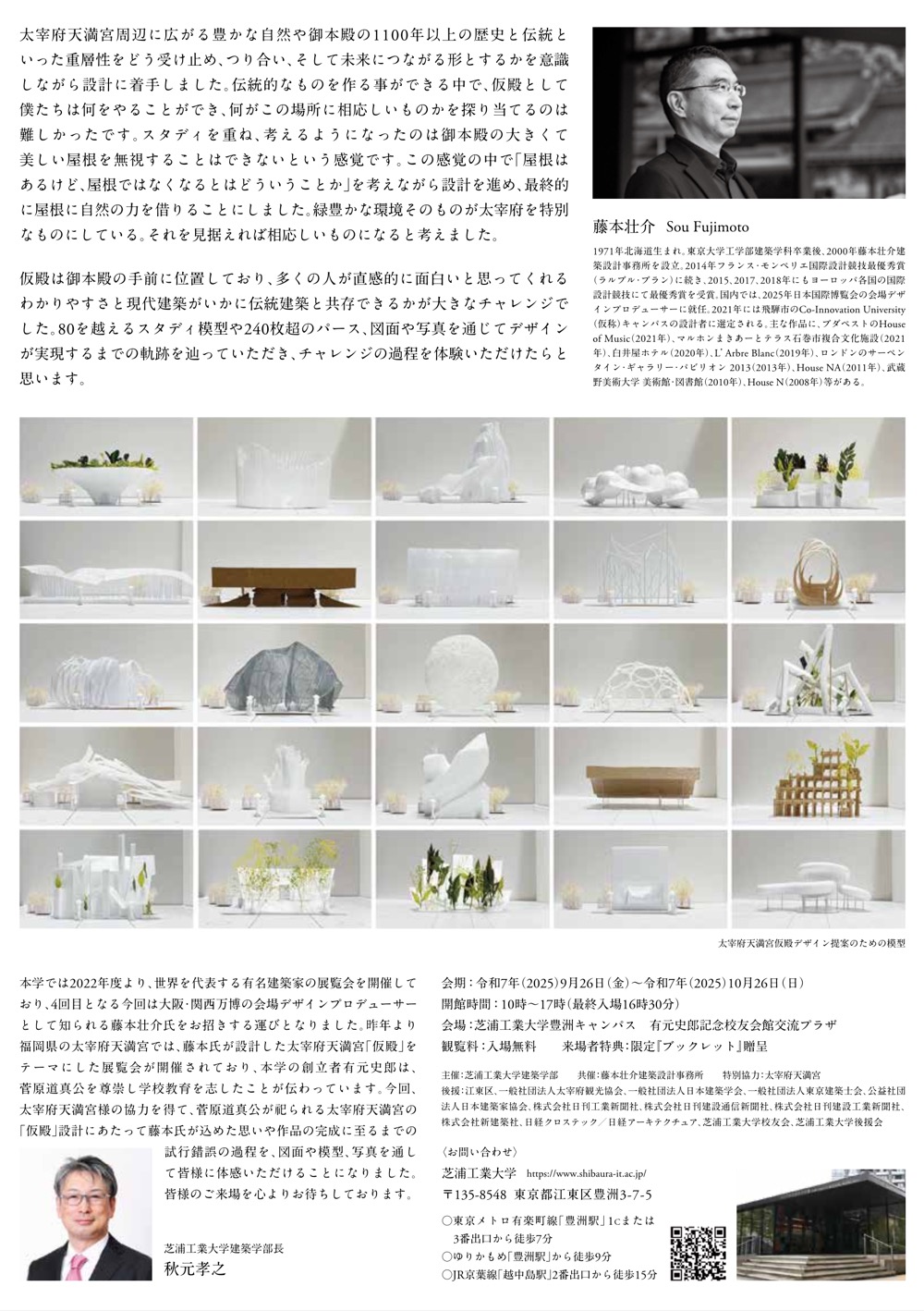 芝浦工業大学は「藤本壮介展 太宰府天満宮仮殿の軌跡」を豊洲キャンパスで開催します!