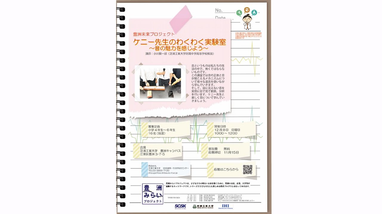 芝浦工業大学が“豊洲未来プロジェクト”のいち企画として、「ケニー先生のわくわく実験室 ~音の魅力を感じよう~[TP1208]」を2019年12月8日(日)に実施します。申込み締切は11月15日(金)。対象は小学4年~6年生で、参加費用は無料です。