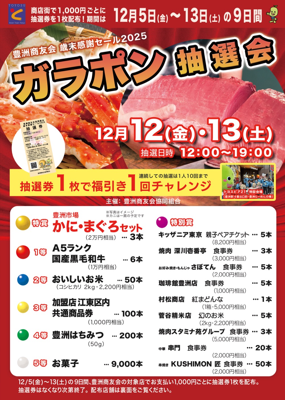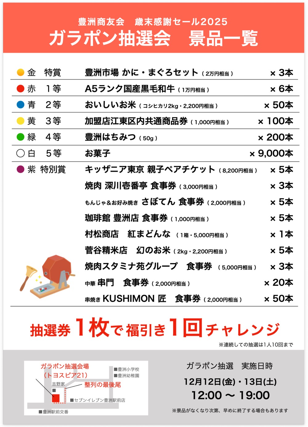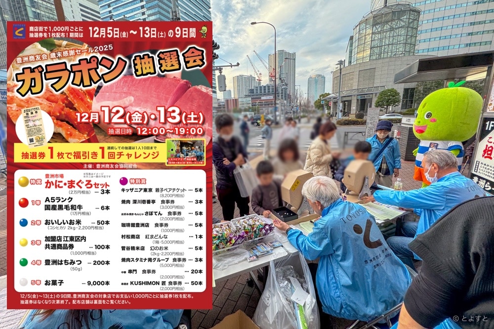 豊洲商店街で毎年恒例の「豊洲商友会 歳末感謝セール2025 ガラポン抽選会」がいよいよ開催となります!