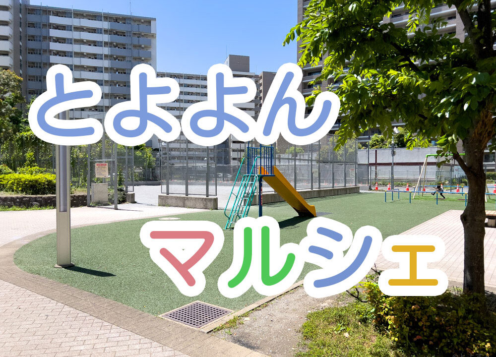 (敷地内に遊具や人工芝スペースのほか、ボール遊びのできるグラウンドもあってすごい・・・!)とよよんマルシェは毎月第4土曜日に定期開催。