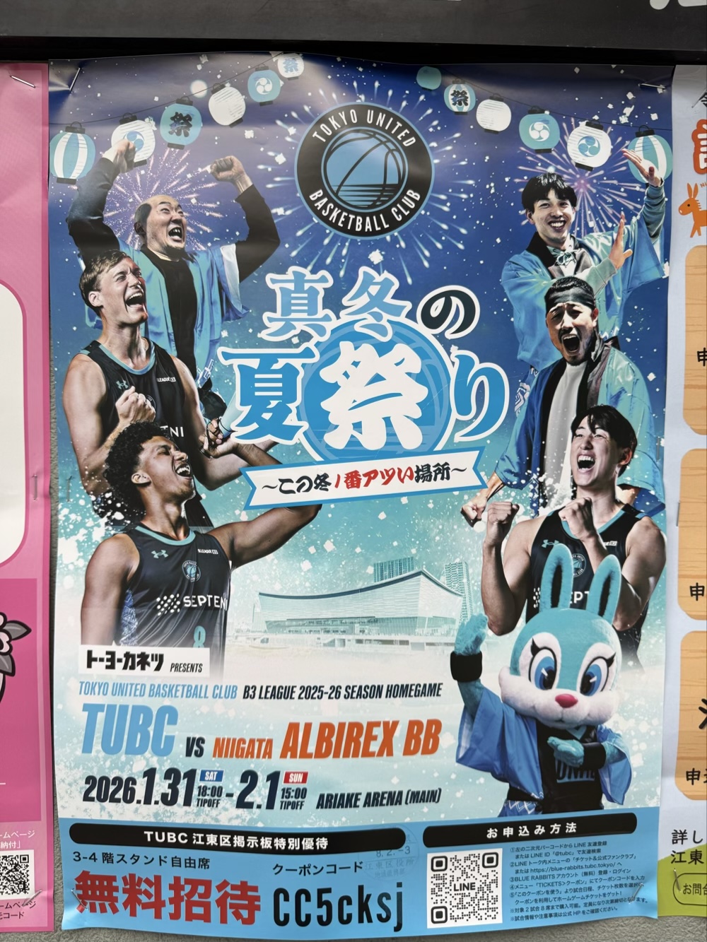 東京ユナイテッドバスケットボールクラブ(TUBC)は2026年1月31日(土)・2月1日(日)の二日間、「真冬の夏祭り 〜この冬1番アツい場所〜」を開催します!