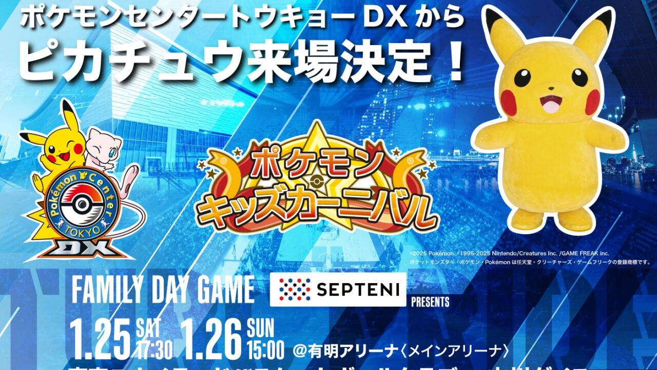 ピカチュウのグリーティング(サブアリーナで実施のユナイトパーク内)を実施するほか、ゲームのオープニングやハーフタイムでもピカチュウが登場するのだとか。