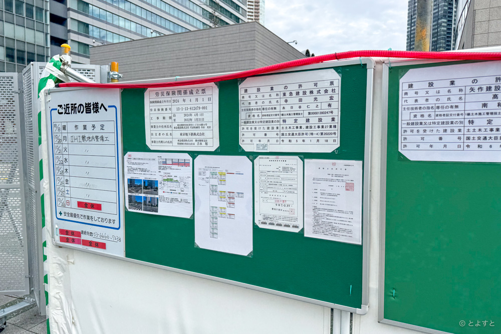 地下鉄・豊洲駅のホーム増設工事、晴海通り沿いでさらなる工事が始まります
