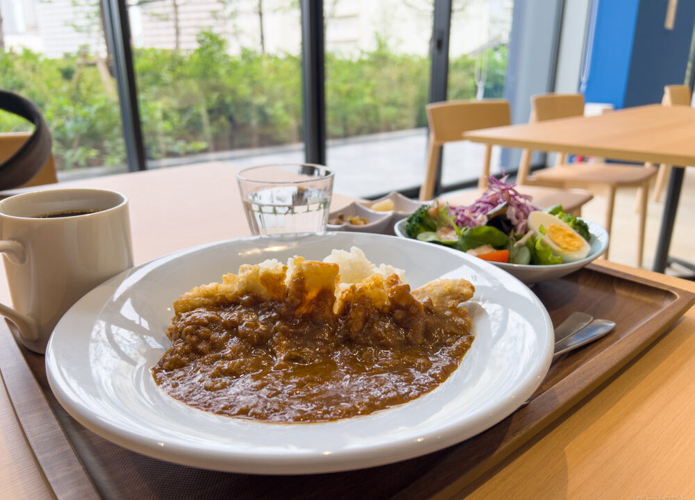 オシャレな鶏の唐揚げの乗ったカレー、と思っていただければだいたいあっています。