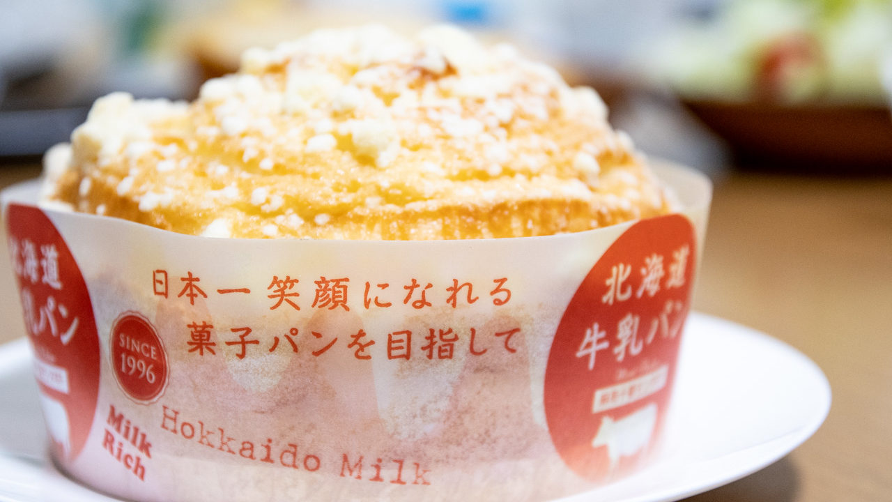 店内中央に鎮座しているのは1996年より販売している1番人気の「北海道牛乳パン」!すごく大きいです。期間限定の「かぼちゃ」も!