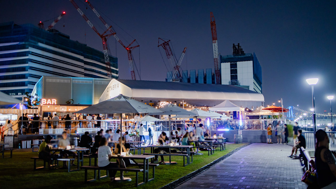 CITABRIA BAYPARK Grill & Barの客席はすべて屋外にあり、どこからでも湾岸エリアの夜景が楽しめる!