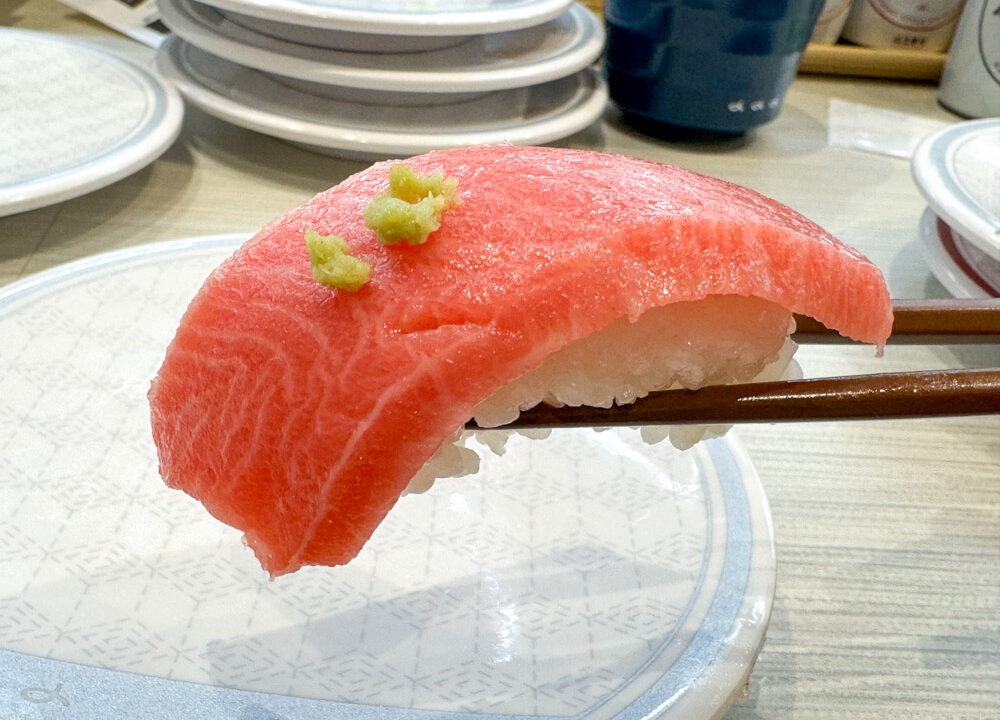 老舗寿司屋さんのそれと比べたら値段相応ではありますが、はま寿司が出している通常の赤身との差は歴然で、脂が乗ってやわらかくやはり大トロです。ごちそうさまでした!