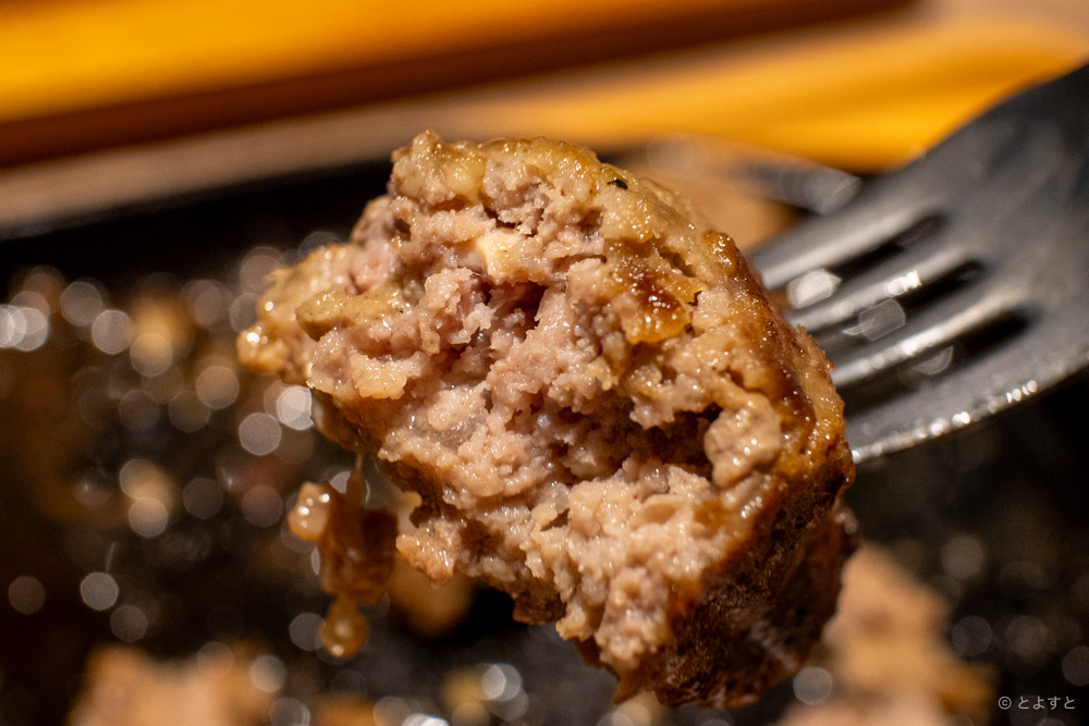 かと言って、肉全体がザクザクゴロゴロしているわけでもなく柔らかかったりもして、1個でさまざまな食感を味わえるハンバーグです!