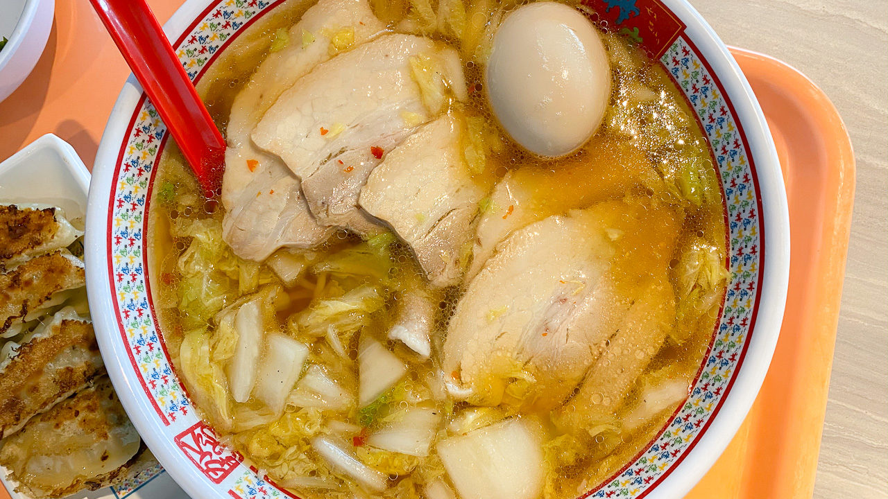 今回はメニュー表に1番人気と表記されている「小チャーシュー煮玉子ラーメン」(税込1,080円)に、セット餃子(税込200円)をプラスしてオーダー。