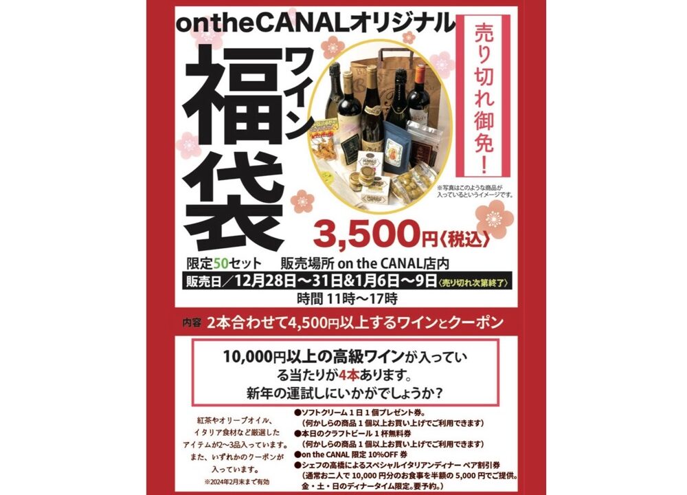 オンザカナルのワイン福袋、この内容は非常に魅力的!欲しい方はこの機会を逃さぬようぜひ店頭へどうぞ〜。