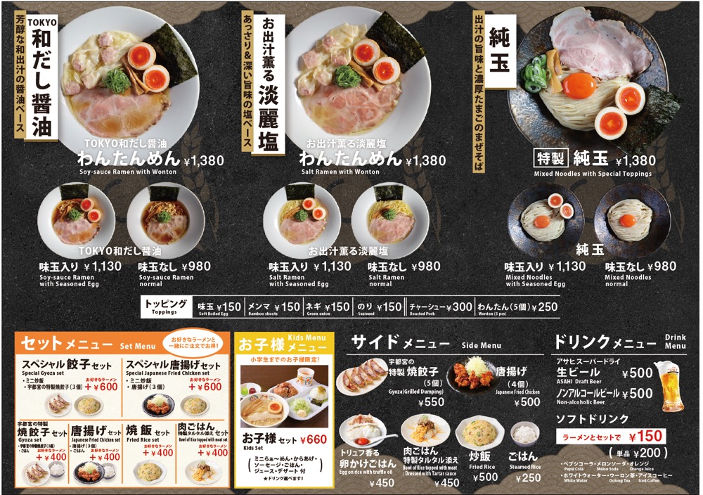 「味玉純玉」の3種類のラーメンがメイン。