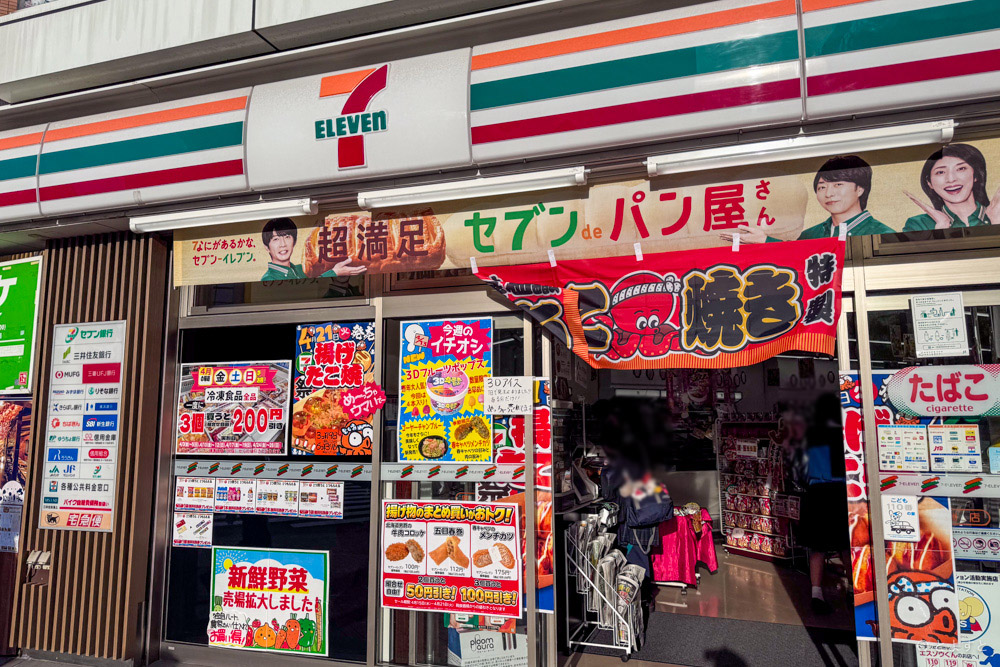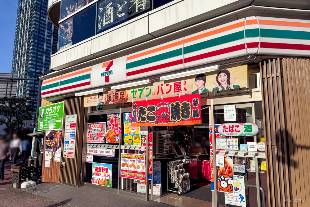 この日も豊洲の街を散策中だったのですが、セブンイレブン豊洲店(国内1号店)の前を通りかかったときに非常に違和感のある暖簾が目に入ってきました。