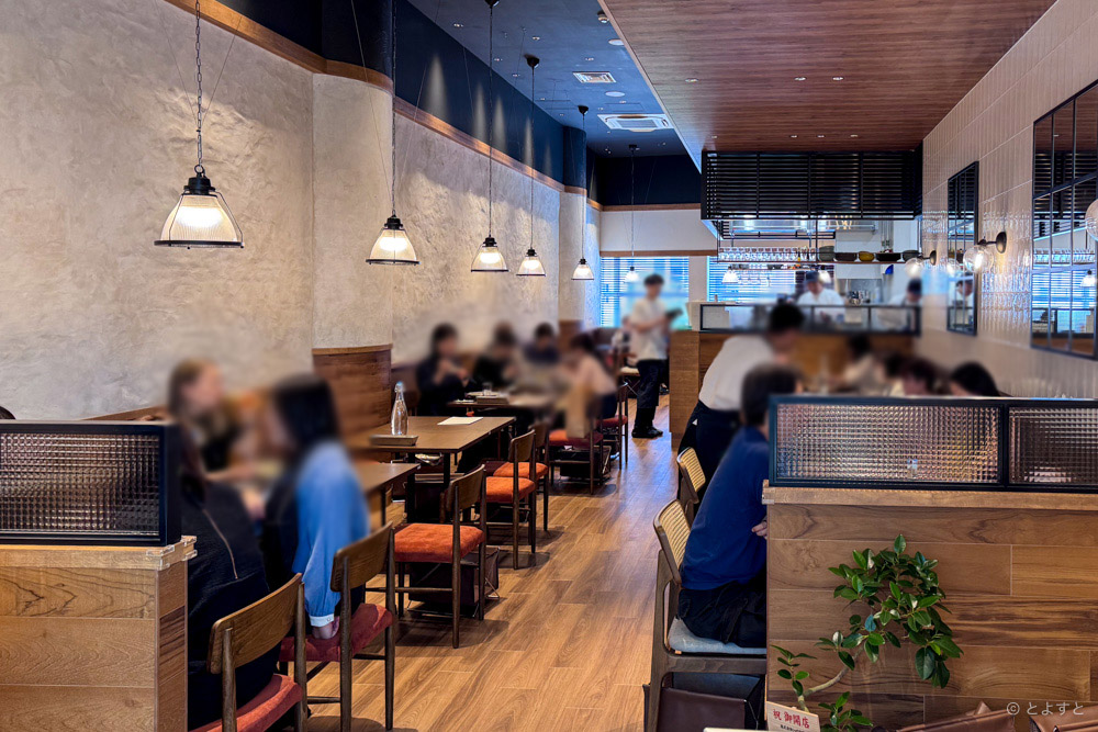 ららぽーと豊洲に誕生したスパゲティ そら。店内はテーブル席が多めなので2人やグループで訪れても利用しやすそうだなと感じました。