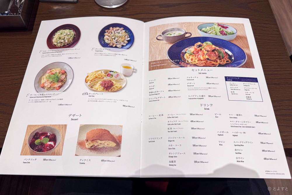 セットメニューだとサラダやスープが付いてきたり、セットドリンクも。デザートはパンナコッタやティラミスが!