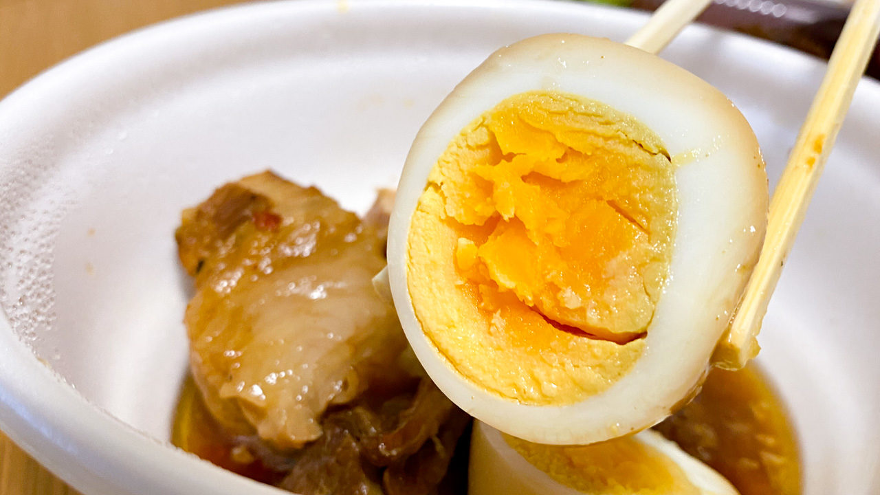 なお、豚の角煮を1人前オーダーすると、角煮は3つ、煮玉子は1つ入っているので、取り合いにならないよう人数にあわせてオーダーしましょう。
