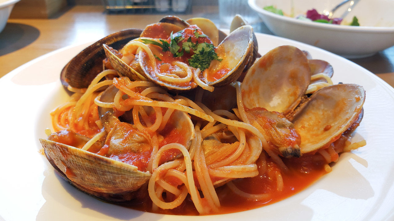 さてさて。トミーナはメニューが豊富で、選ぶのにかなり迷いました。今回は何食べようかな。そこで、せっかくなので季節限定の「アサリのトマトソース」(2,300円)を選択。