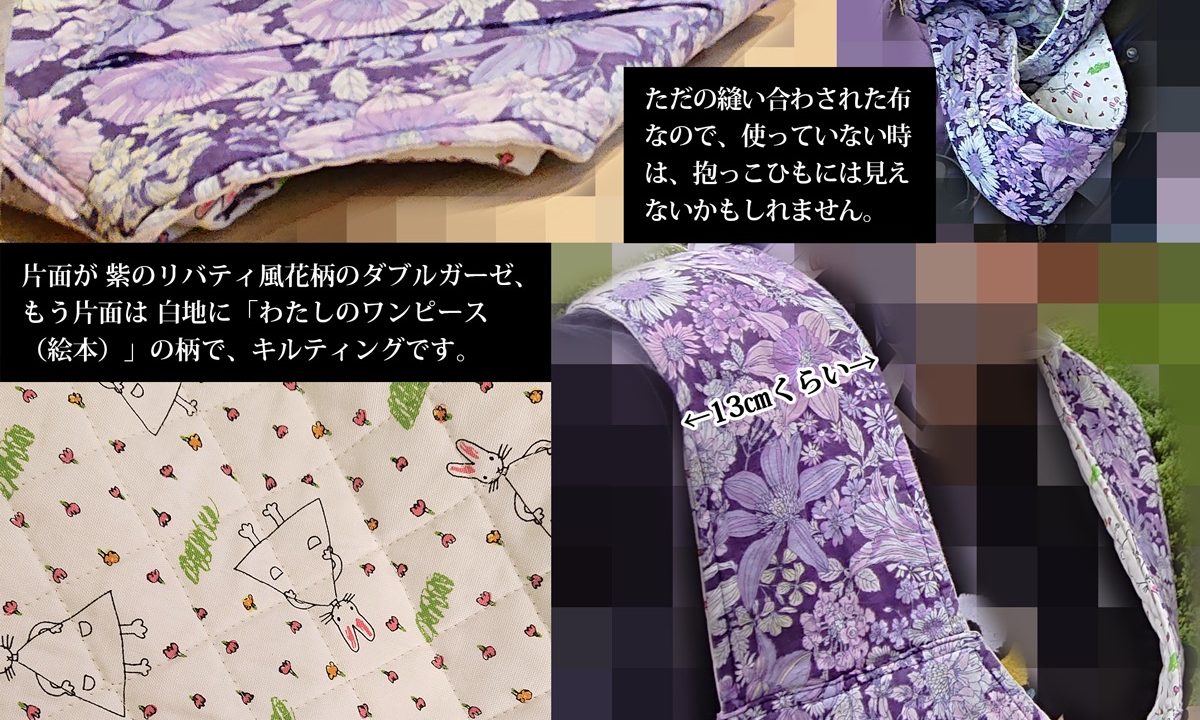 母の手作りで、昨年第一子が産まれてから毎日のように使ってきた、思い出がたくさん詰まったわたしにとって本当に大切なものです。