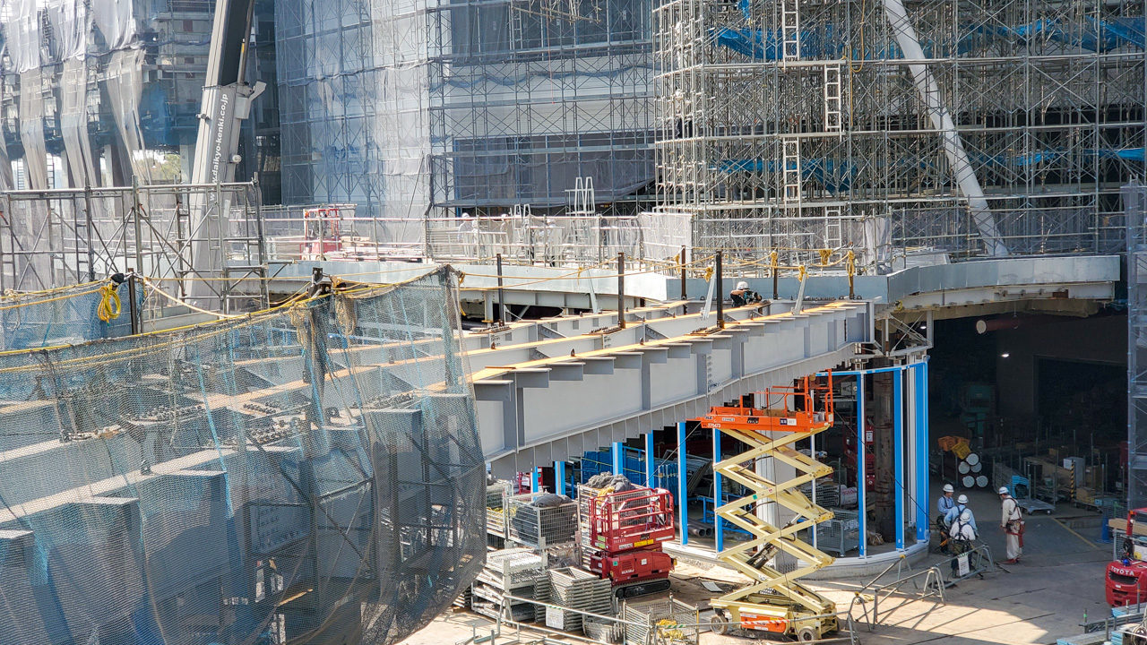 今回は、豊洲シビックセンターの3階と豊洲ベイサイドクロスの2階を結ぶ連絡通路。いよいよ着工に入ったのです!