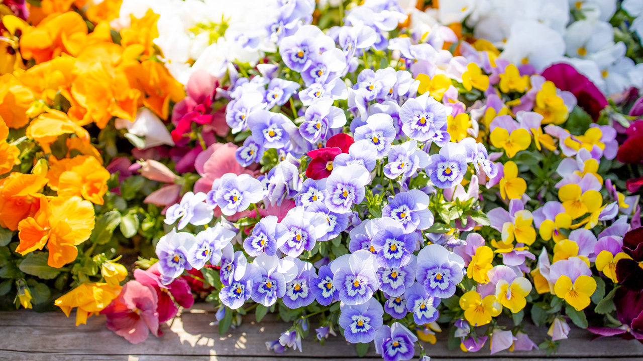 コミュニティガーデン「豊洲三丁目ガーデン」さんによって植えられたきれいなパンジーやチューリップが咲いています♪