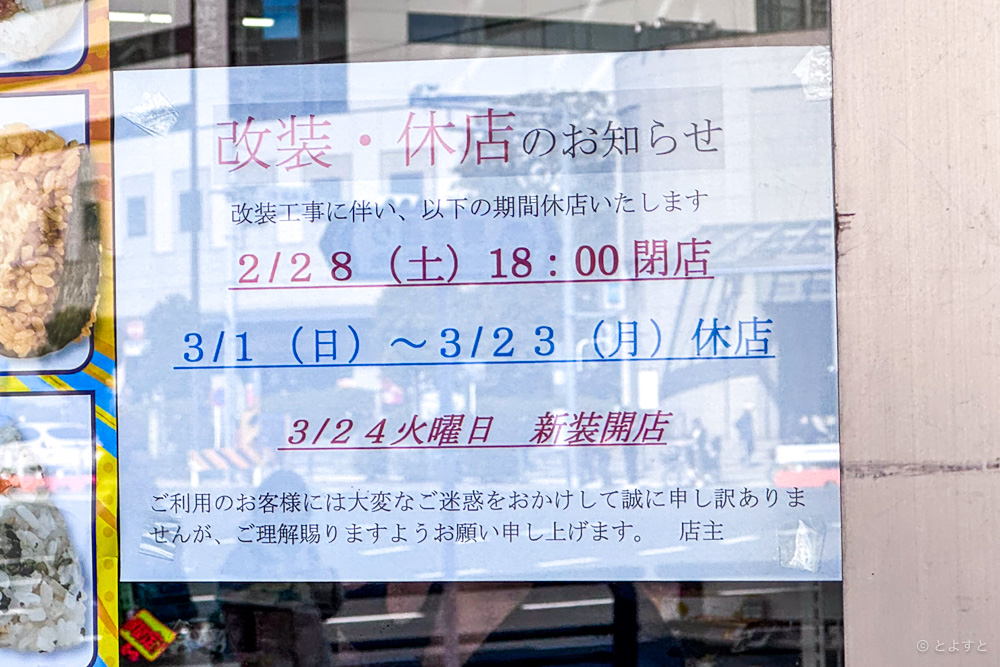 改装工事に伴い、通常営業は2026年2月28日(土)の18時をもって終了し、一旦閉店。