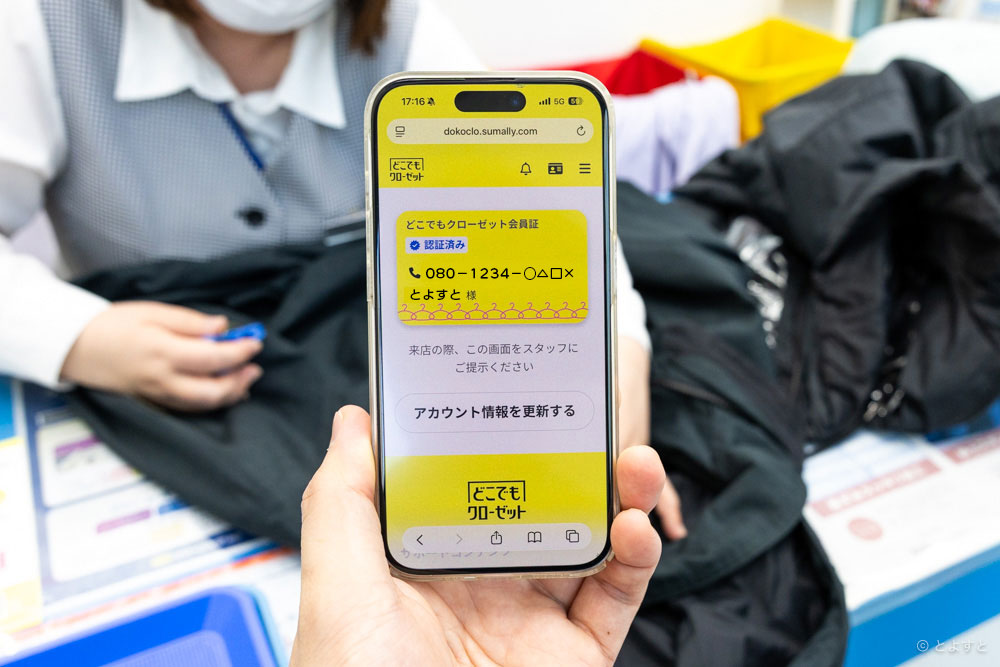 あとは簡単!通常のクリーニング利用と同じく衣類をお店に持って行き、「どこクロ」の利用を告げて会員証の画面を見せるだけ!