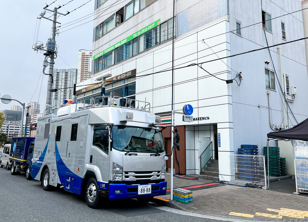まさに生放送が行われる数時間前にお店の下に行ってたら、フジテレビの中継車が停車し、機材の並んだテントが設置されていまして、ただならぬ緊張感が。