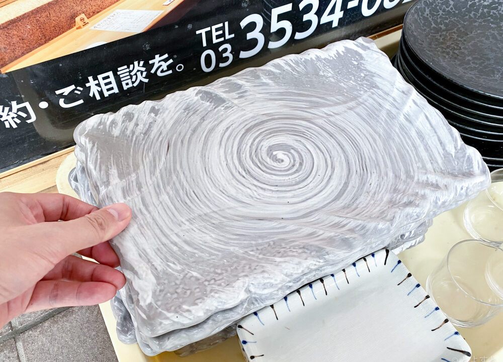 刺身盛りやサラダなどの盛り付けに良さそうな長いお皿から大きな皿、取り分けるのに便利な小皿も全部無料で自由に持ち帰れる状態になっています。