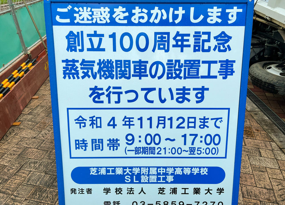 2022年7月13日、芝浦工業大学は創立100周年を記念して、豊洲の芝浦工業大学附属中学高等学校に蒸気機関車を設置する工事を開始しました。