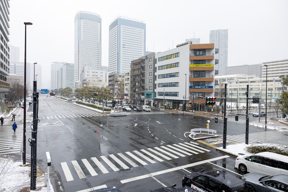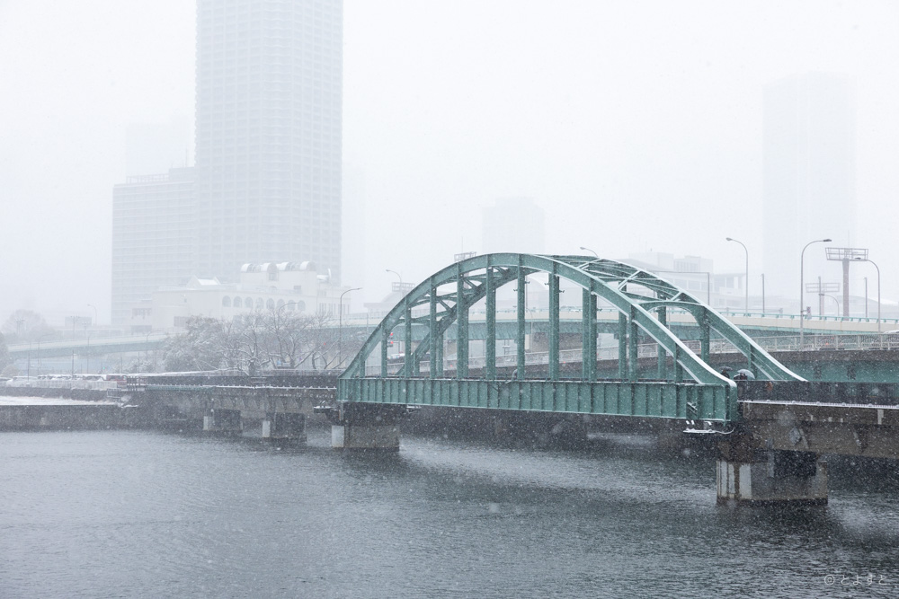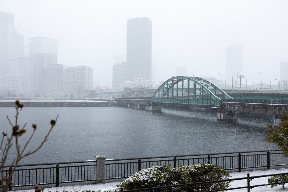4年ぶりに雪が積もった豊洲の街、撮り歩いたあとも降り続いている雪