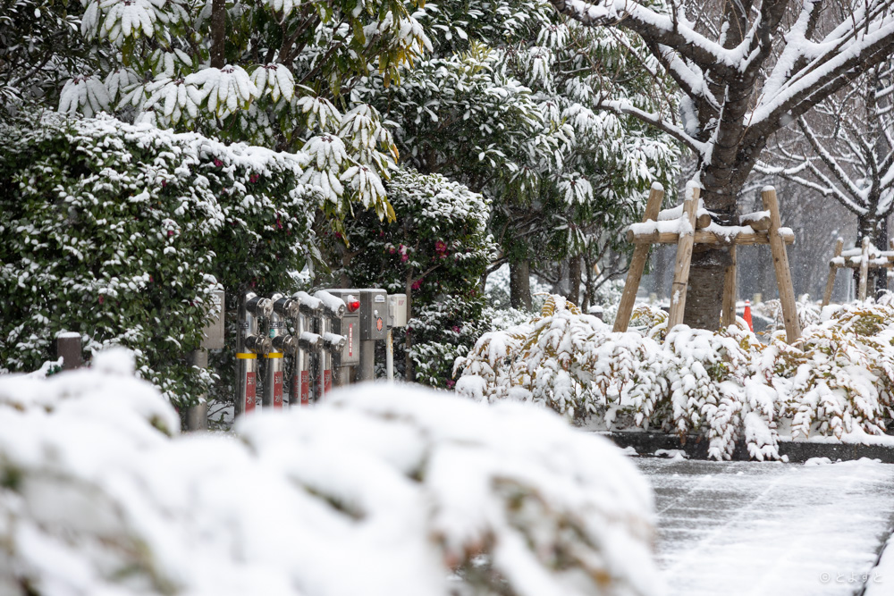 午前中にやむとの予報だった雪は12時を過ぎてもやや大きめの粒が降り続いていまして、現在はこれらの写真以上に雪が積もっている状況です。