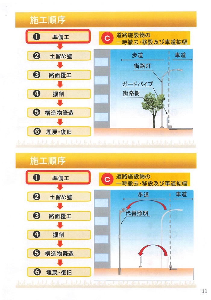 → 車道と歩道の境界を施工するときに縮小する。具体的な範囲は今後決定する。