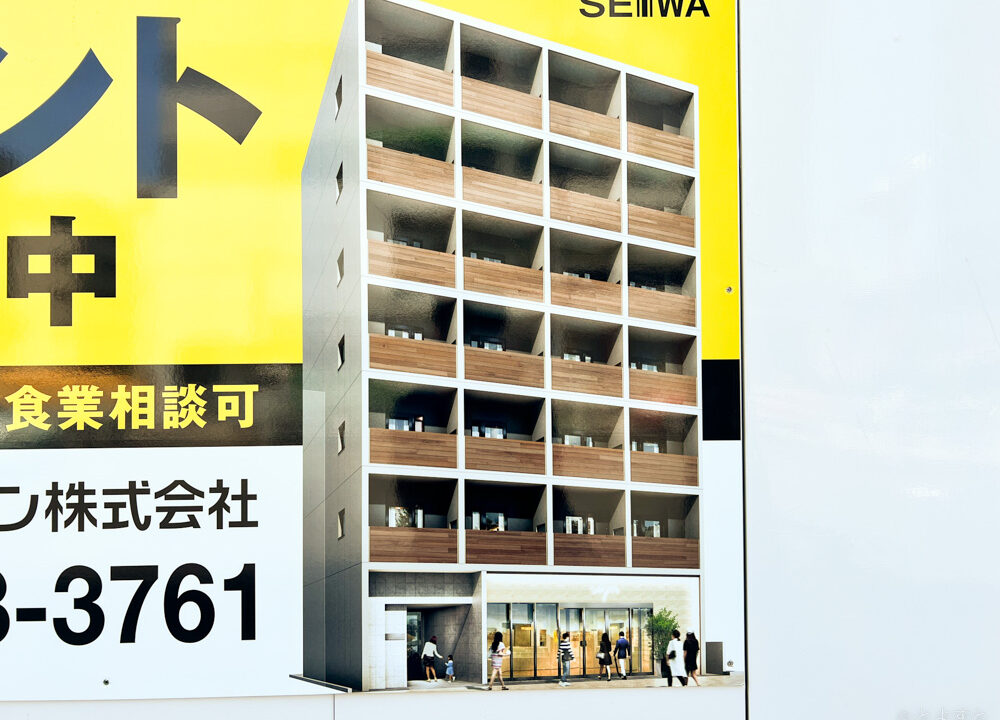 (一時的にコインパーキングになっていたところが建設地)生和コーポレーションの自社設計・施工物件で、2022年12月もしくは2023年1月には竣工予定。