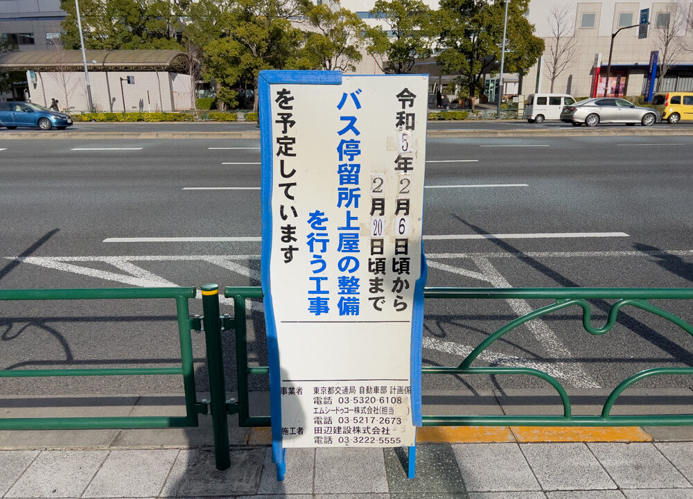 (屋根がつくことになった5番のりば)そんなバスロータリーの晴海通り側にポツンとある都営バスの停留所には、なぜかずっと屋根(上屋)が付いていませんでした。