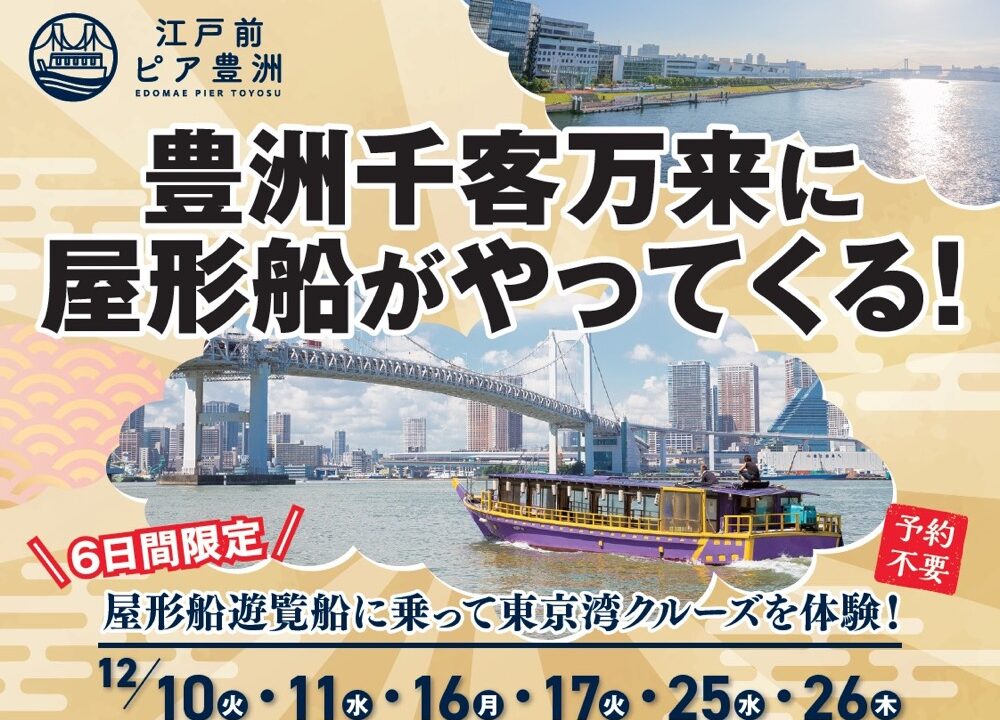 豊洲 千客万来で「屋形船遊覧クルーズ」、12月プレ運航へ!千客万来からフード持ち込みOK