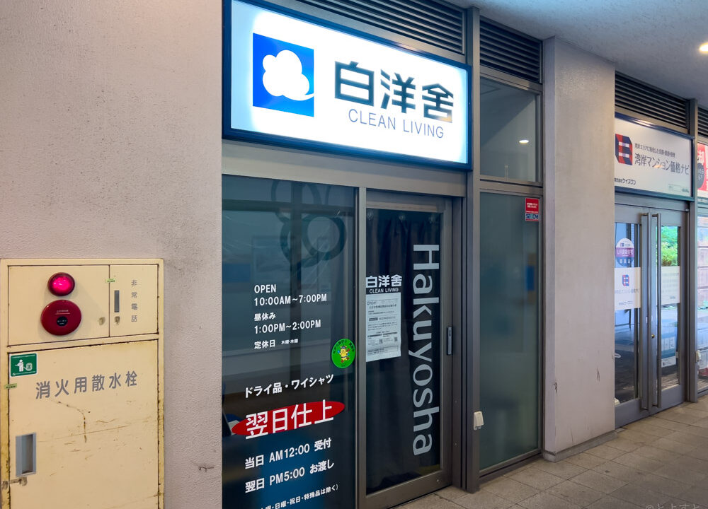 5月の時点でこの場所の次期テナントを募集しているのを見かけたので、近いうちに閉店することは明らかだったのですが、白洋舎が公表したことを受けて閉店日が判明しました。
