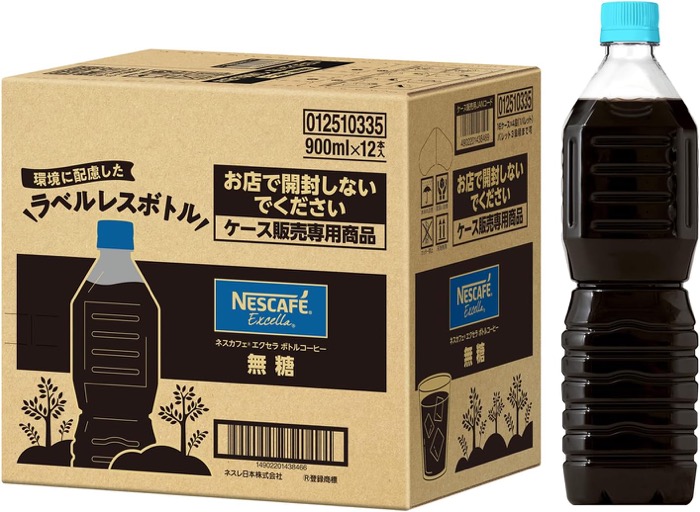 アイスコーヒー「ネスカフェ ボトルコーヒー エクセラ 無糖 ラベルレス 900ml×12本」