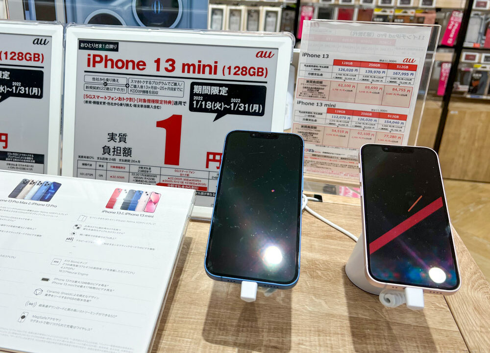 ノジマ ららぽーと豊洲店がau版の「iPhone 13 mini 128GBモデル」をたった1円で販売しています!