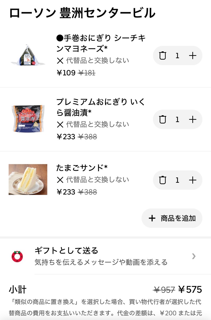 (お店と同価格の表記が)Uber Eatsはだいたいの飲食店で通常価格に30%くらい上乗せされて販売されているケースが多いのですが、ここのローソンは店頭と同価格なのだそうです。
