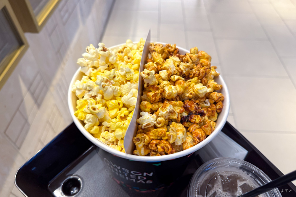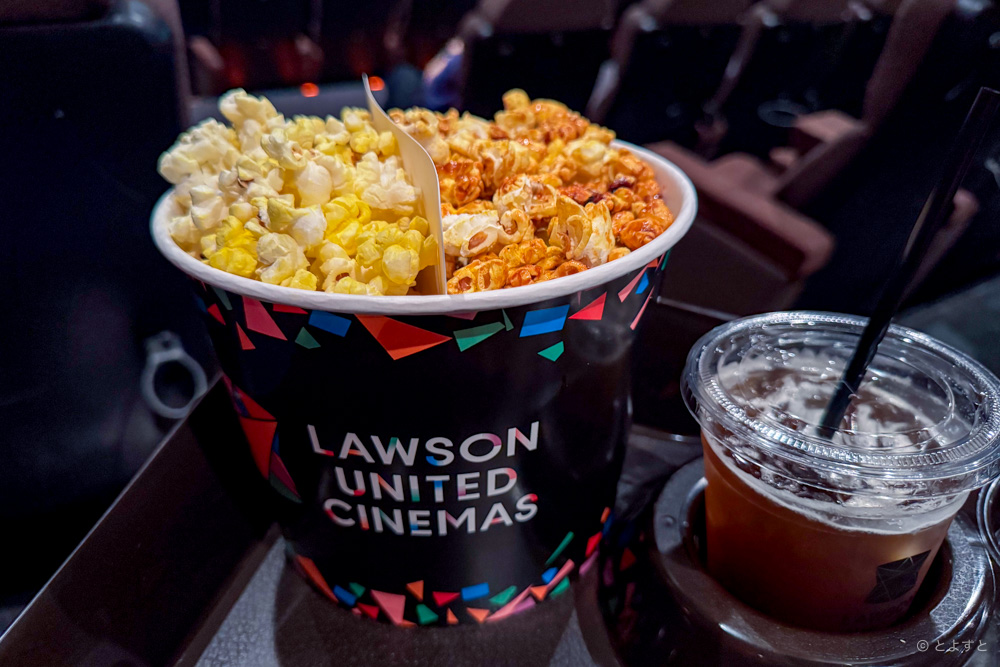 (写真のポップコーンはMサイズのもの)よって、ローソンの“盛りすぎチャレンジ”の実施に伴い、ユナイテッド・シネマ豊洲でもポップコーンのサイズアップをしているというわけです!