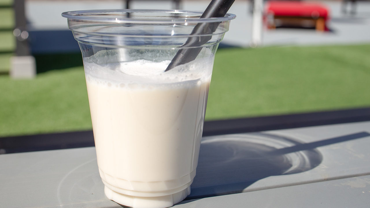 口当たりをよくするためになるべく泡を抜き、まったりしないよう真空ミキサーを使うこだわり。小さなお子さんでも飲みやすそう。