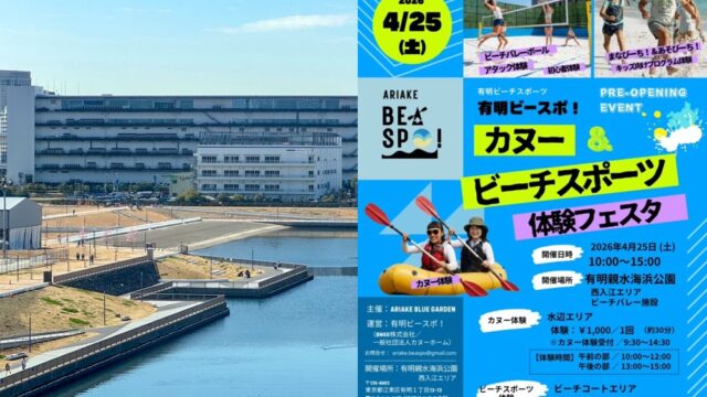 イベント 有明親水海浜公園の砂浜にマリンスポーツ施設「有明ビースポ!」が誕生!カヌー&ビーチスポーツ体験フェスタを開催 2026年4月24日 とよすと https://toyosu.tokyo/wp-content/uploads/2024/04/toyosuto10th_325-75.jpg とよすと – 毎日更新!豊洲エリアの今がわかる地域情報サイト